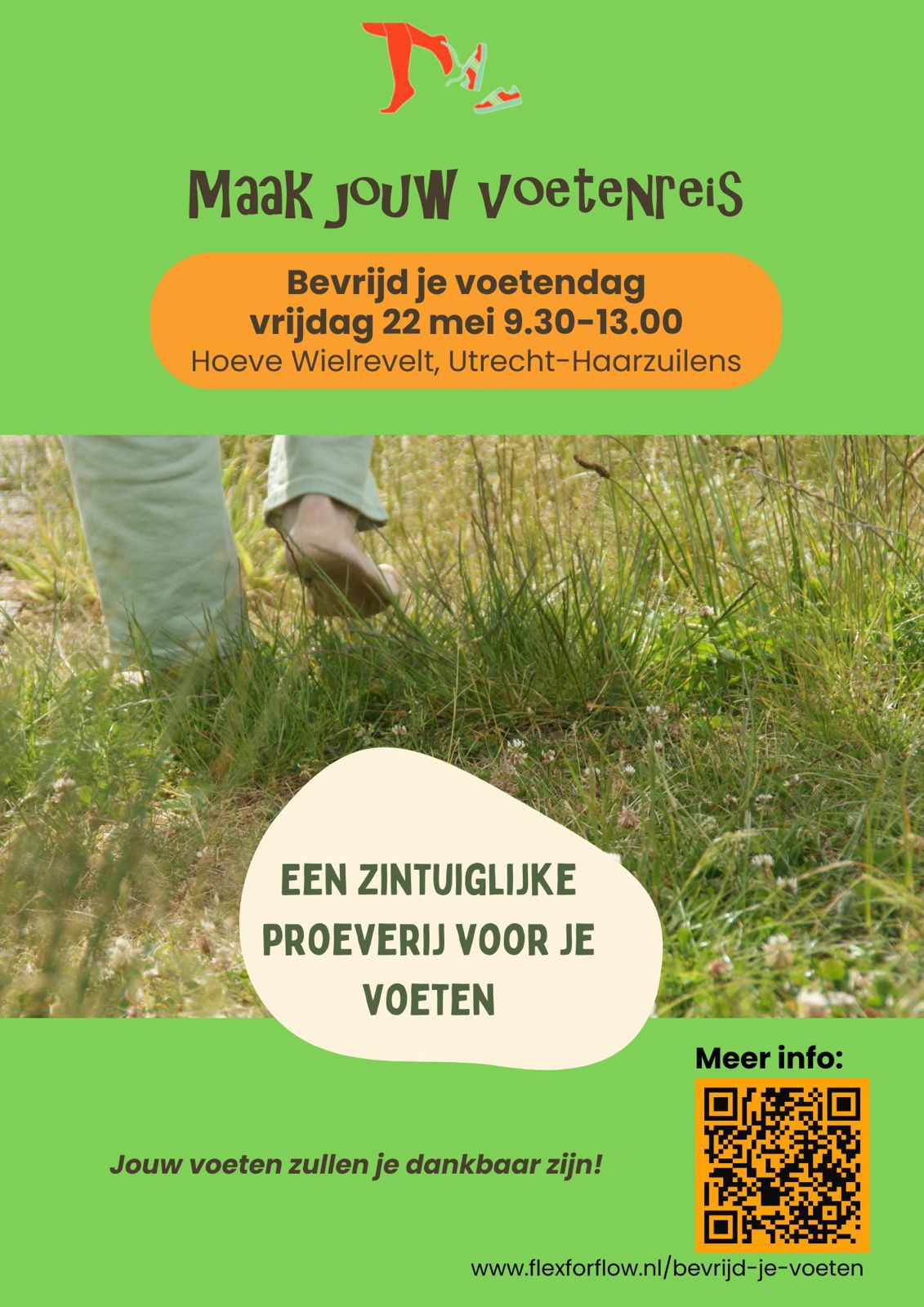Op vrijdag 22 mei 2026 organiseren Flex for Flow en Zijpaadjes samen met andere partijen een voel-je-vrij-dag: Bevrijd je Voeten-dag